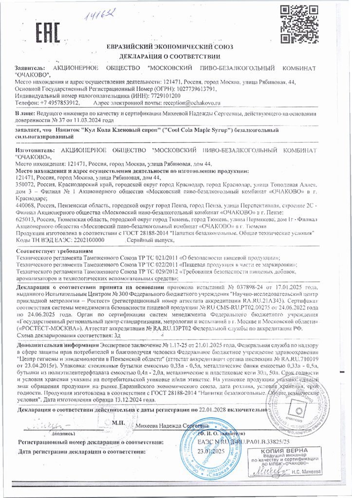 Напиток Cool Cola Кленовый Сироп 1л пэт