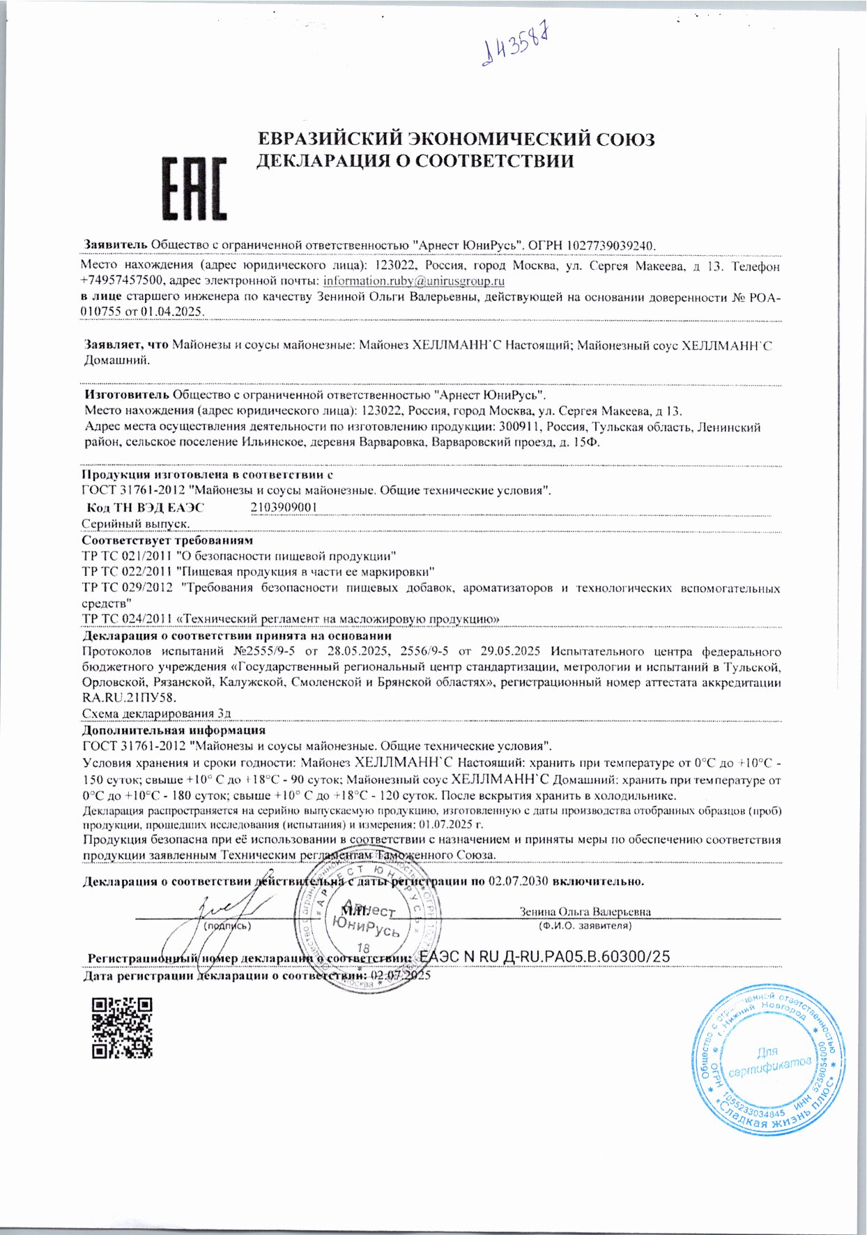 Производители: Юнилевер Хеллманнс
