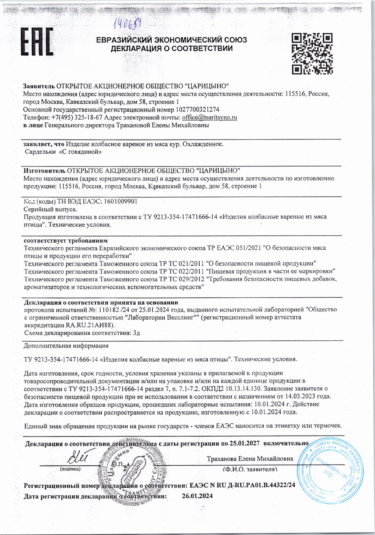 Письма о наличии ЗМЖ, ЗЖЖ в продуктах
