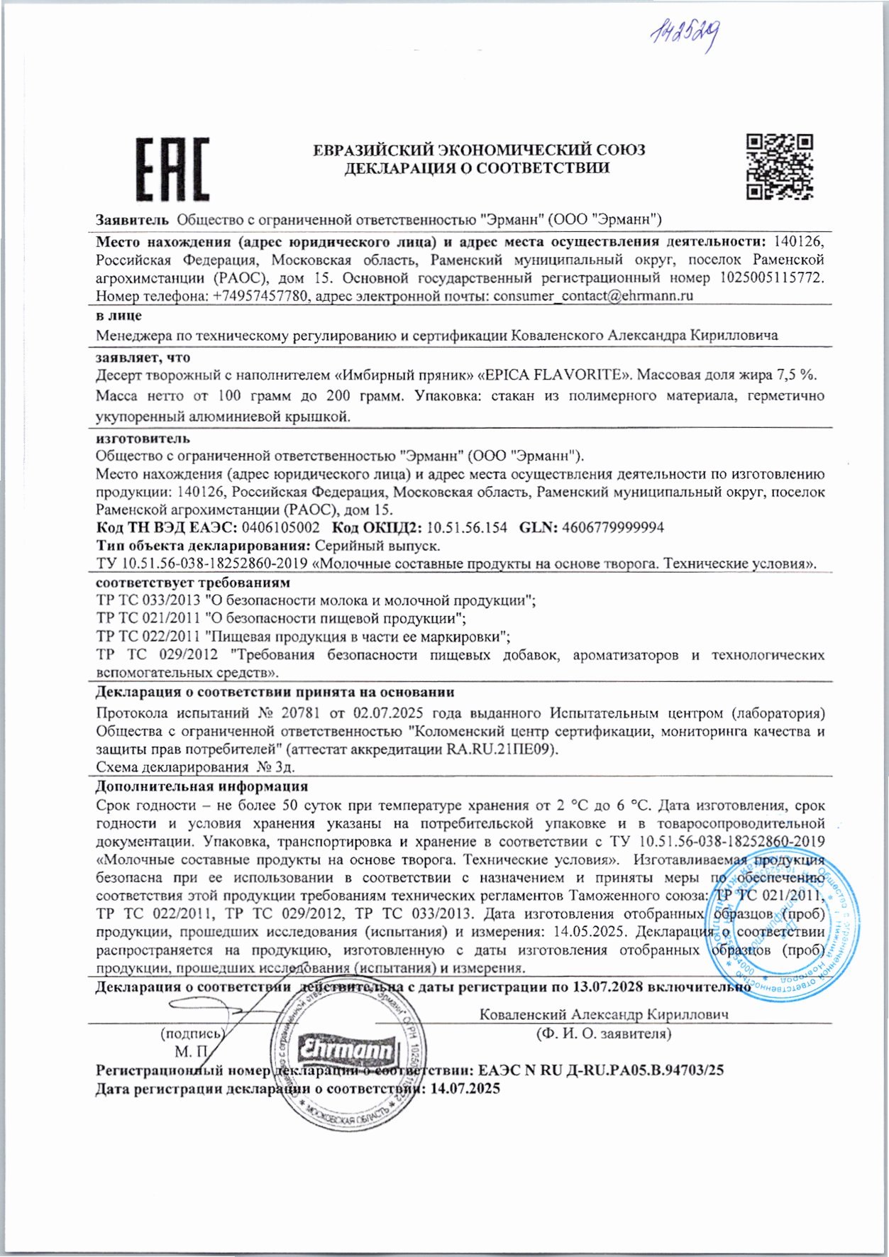 Десерт Творожный Еpica Flavorite Имбирный Пряник 7,5% 130г