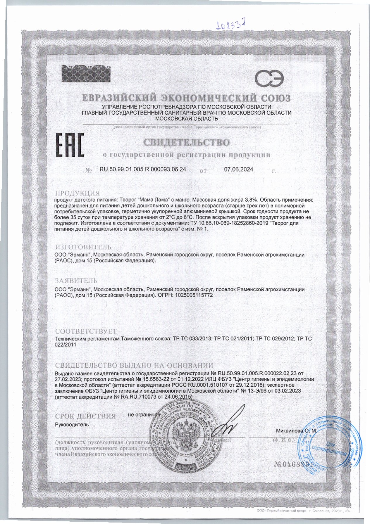 Творог Мама Лама с Манго 3,8% 100гр Эрманн