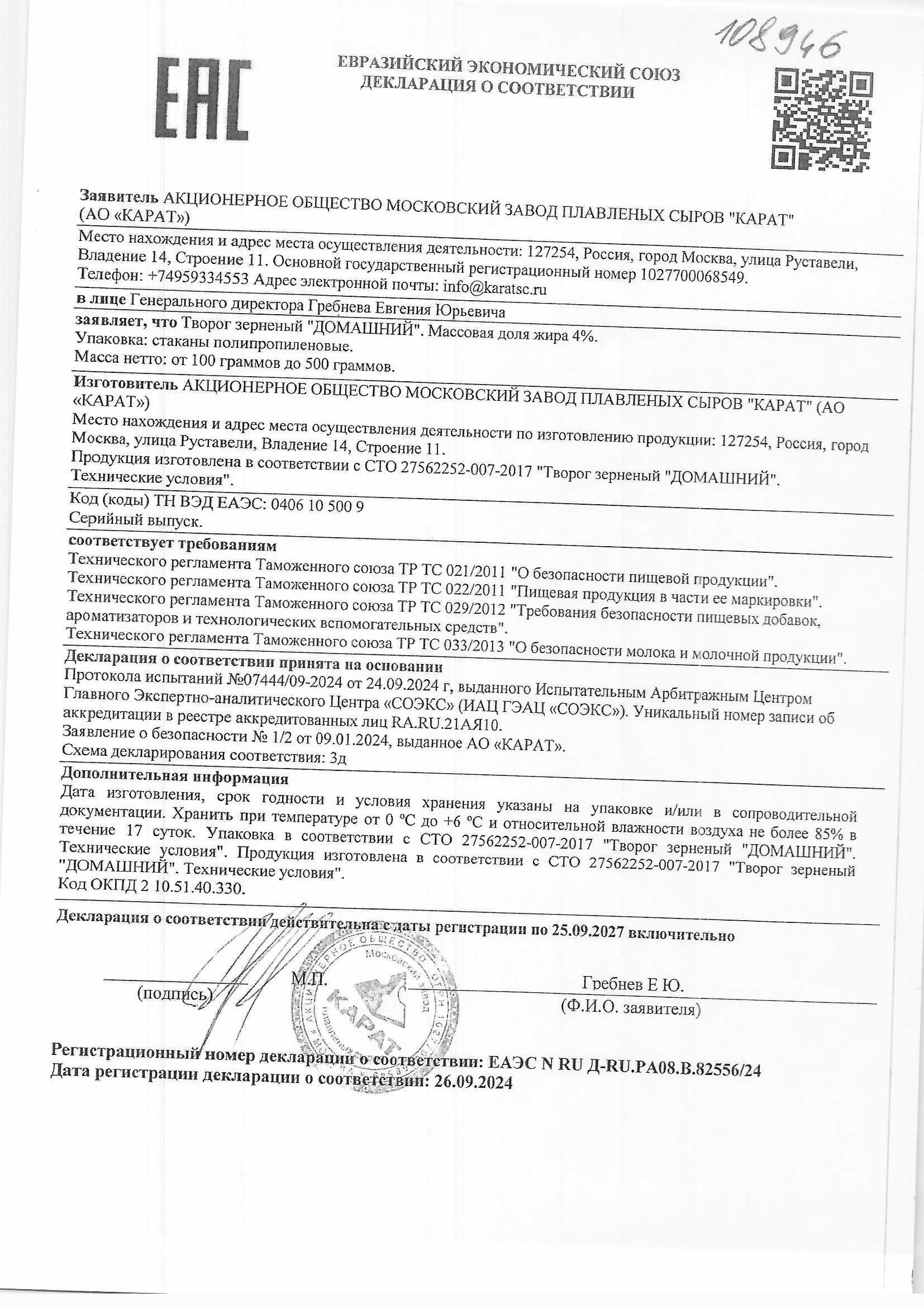 Творог Зерненый Карат Домашний 4% 200г