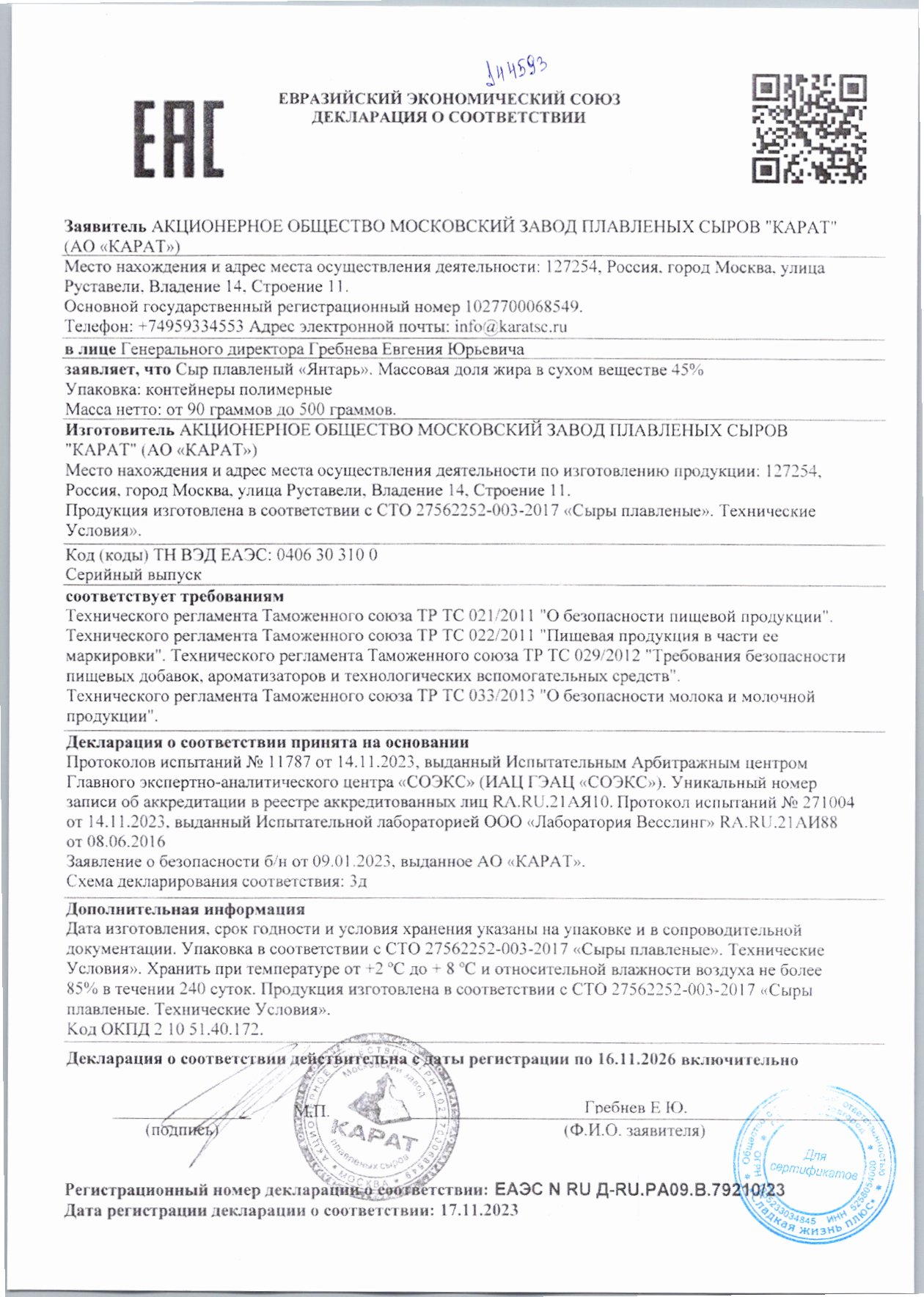 Сыр Плавленый Карат Янтарь 45% 400г