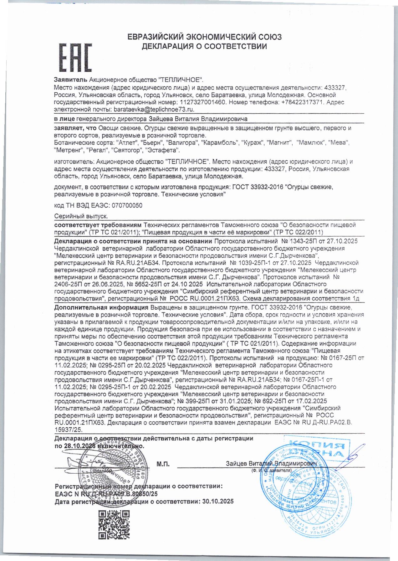 Огурцы Тепличные Эстафета 1кг