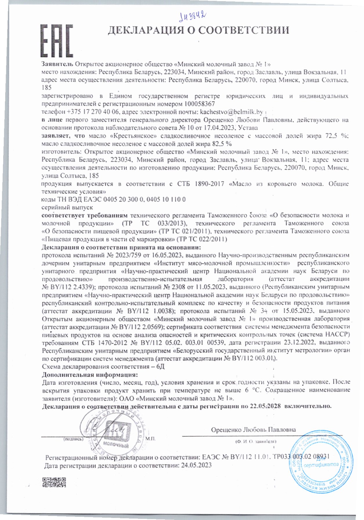 Масло Сливочное Минская Марка 82,5% 180г