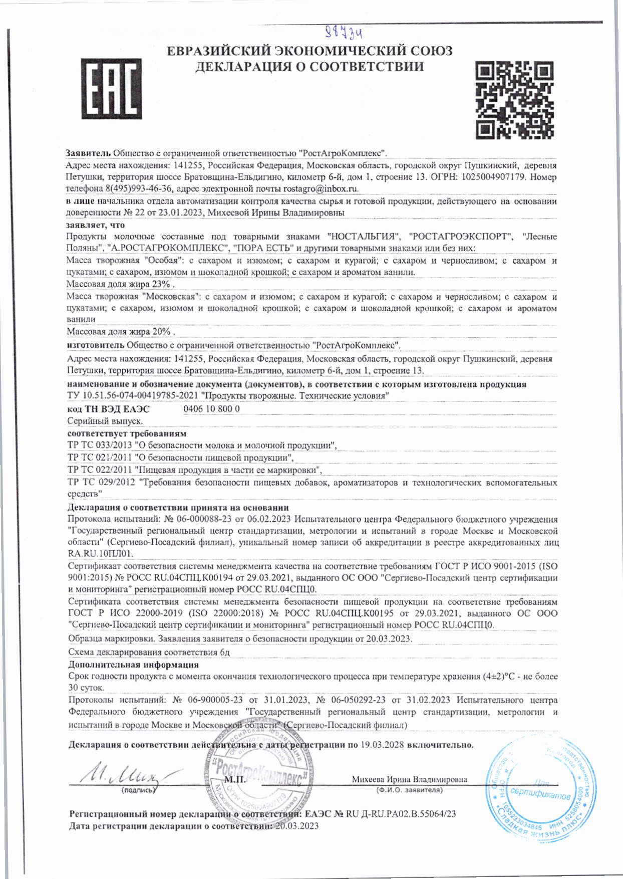 Творожная Масса Ростагроэкспорт с Сахаром и Изюмом 23% 180г