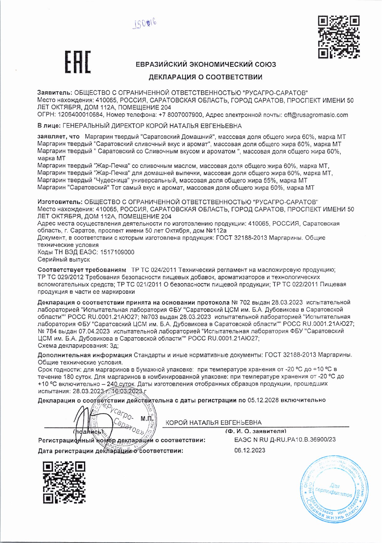 Маргарин Саратовский Сливочный 60% ГОСТ 180г
