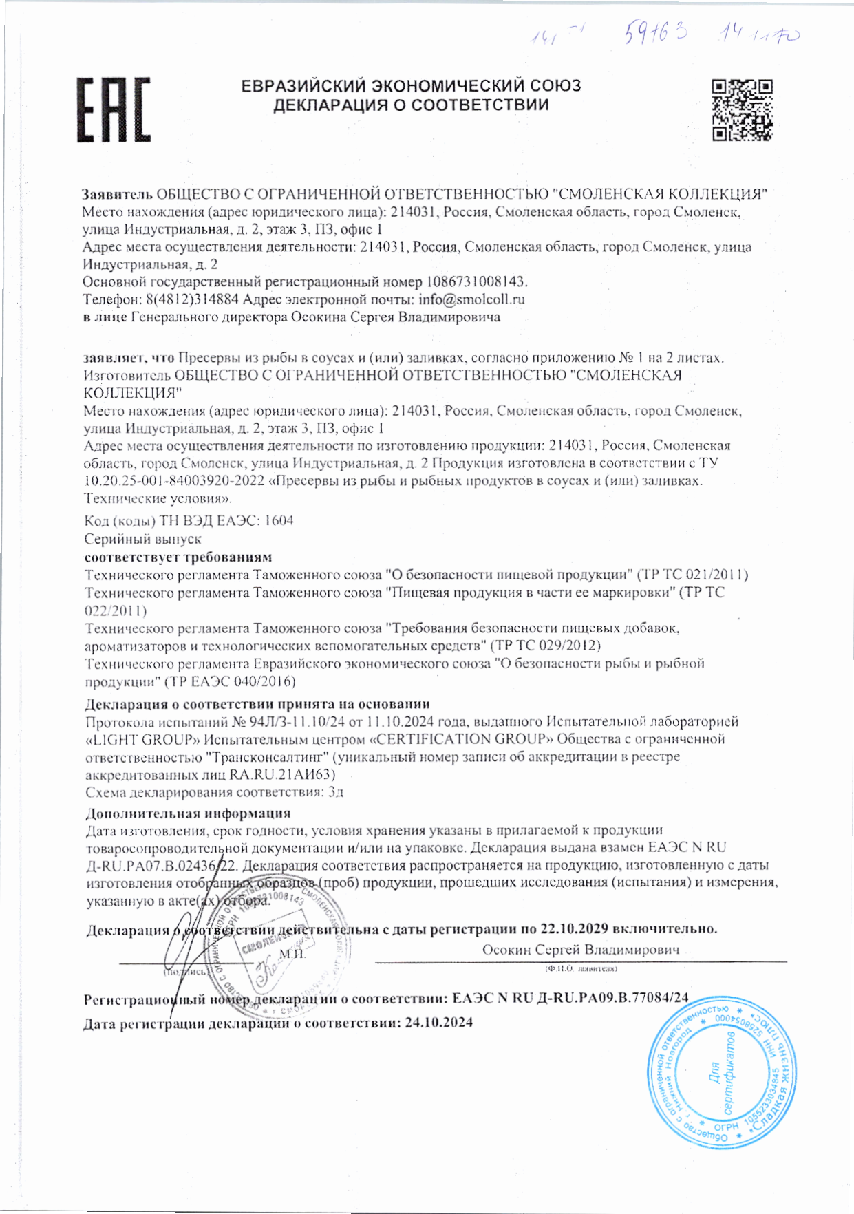 Письма о наличии ЗМЖ, ЗЖЖ в продуктах