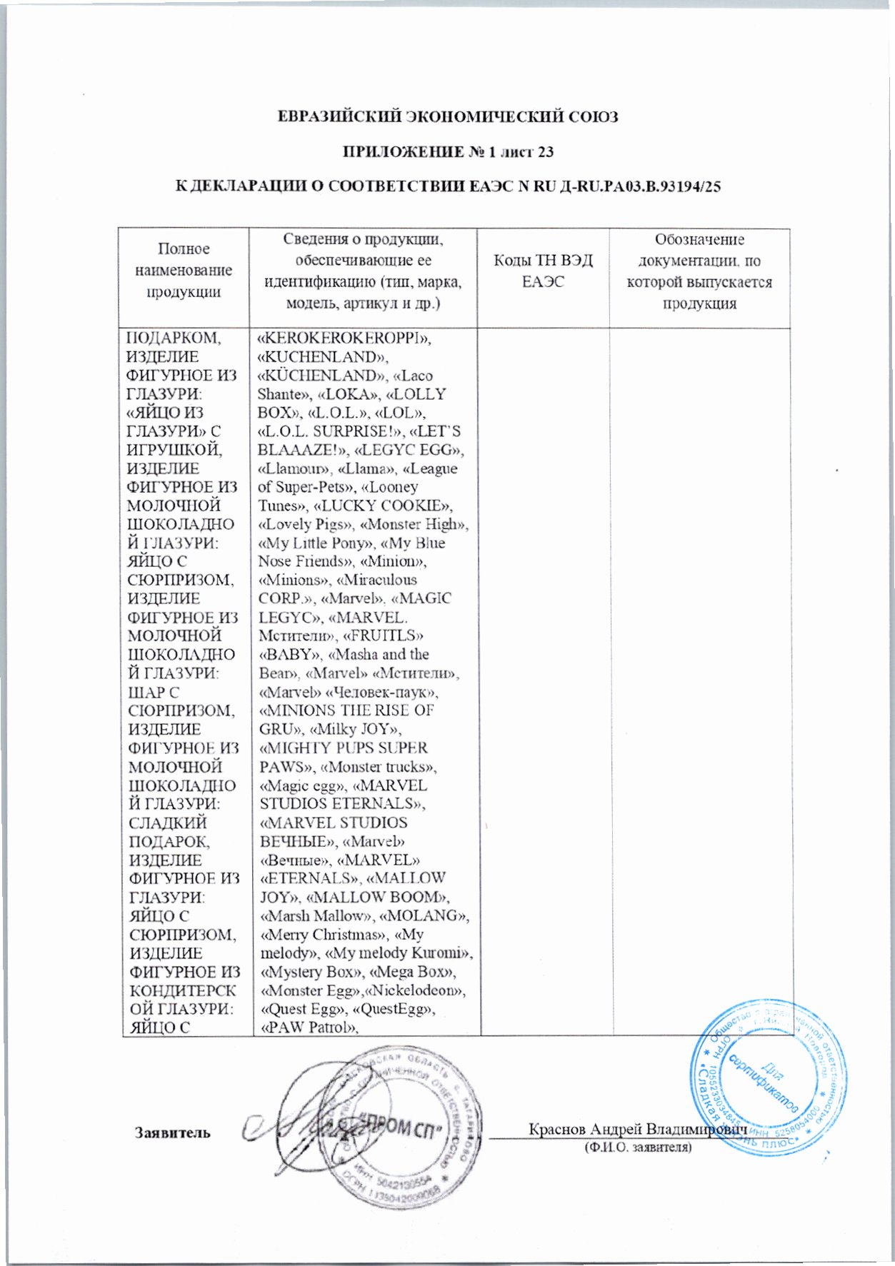 Календарь Шоколадный Candy Party Влад А4 55г