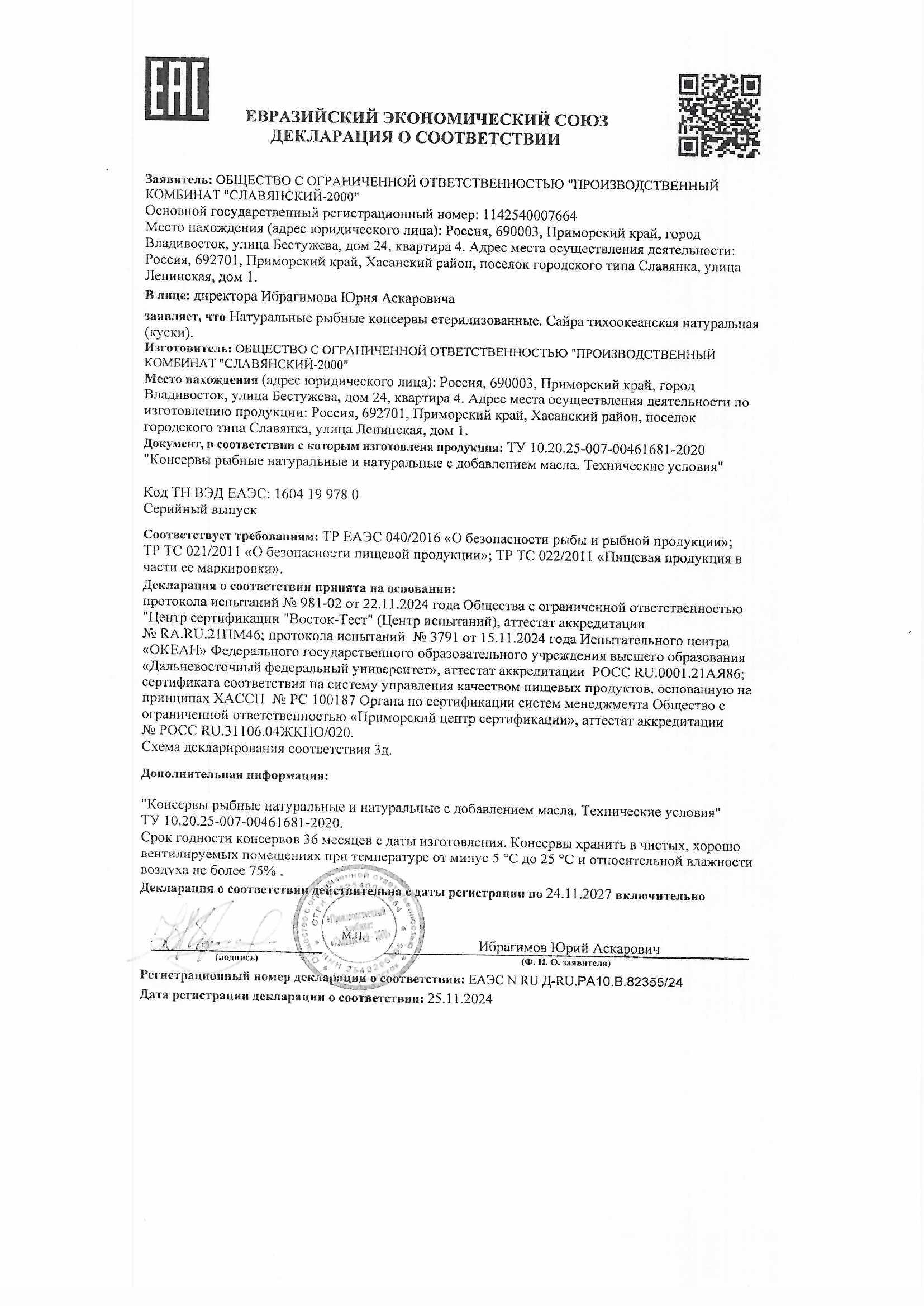 Сайра Тихоокеанская 5 Морей Натуральная 250г