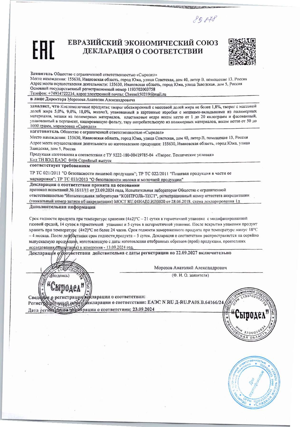 Творог 18% 3кг