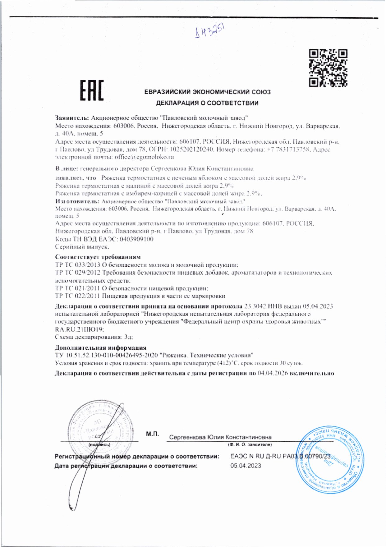 Ряженка ЭГО Термостатная с Печеным Яблоком 2,9% 180г