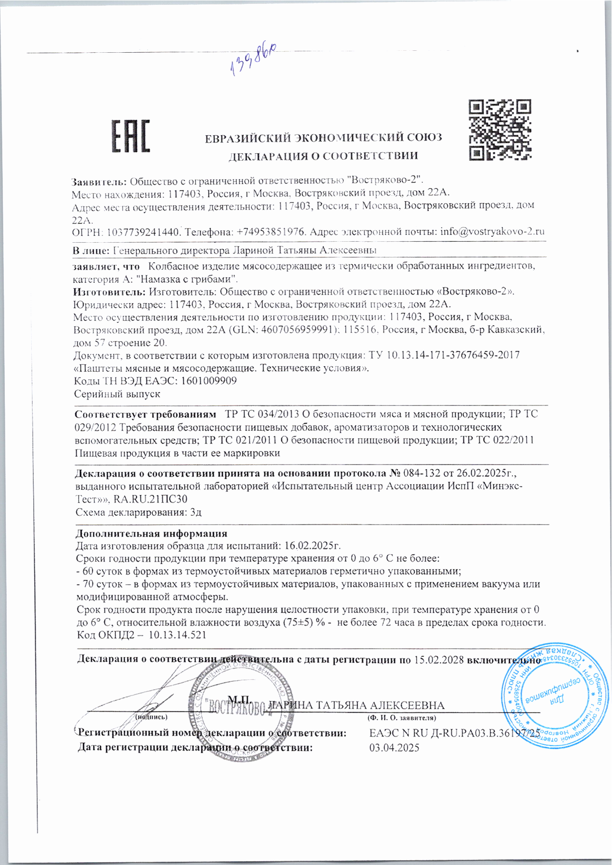 Намазка Востряково с Мясом и Грибами 150г