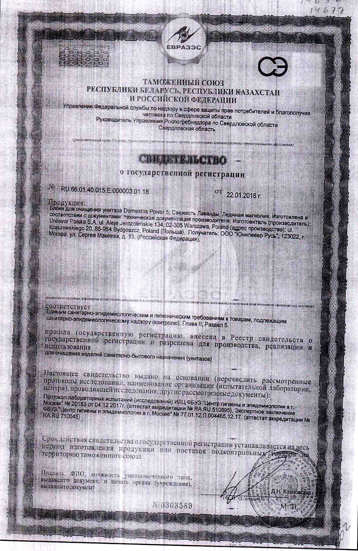 Блок Domestos для Очищения Унитаза Power 5 Ледяная Магнолия 55 гр Юнилевер