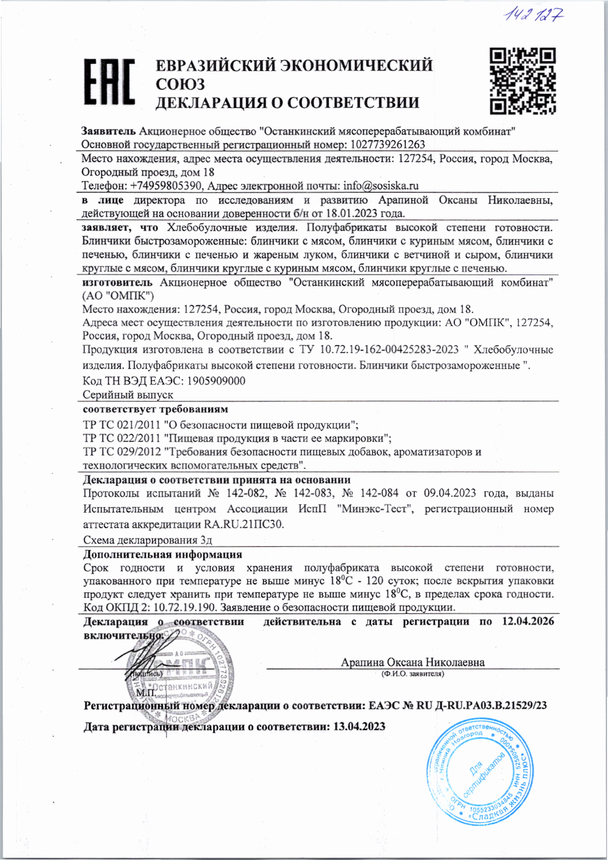 Блинчики Останкино Круглые с Мясом